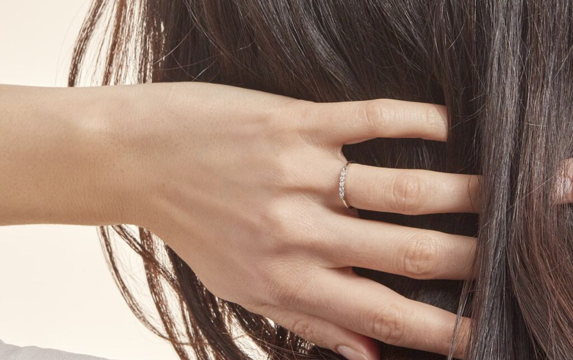 "Une alliance élégante en argent blanc avec des diamants ronds scintillants pour ajouter une touche de brillance à votre doigt. Fabriquée avec un souci du détail et de la qualité, cette alliance ajoute une touche de sophistication à toute tenue. Parfait pour célébrer votre amour éternel."