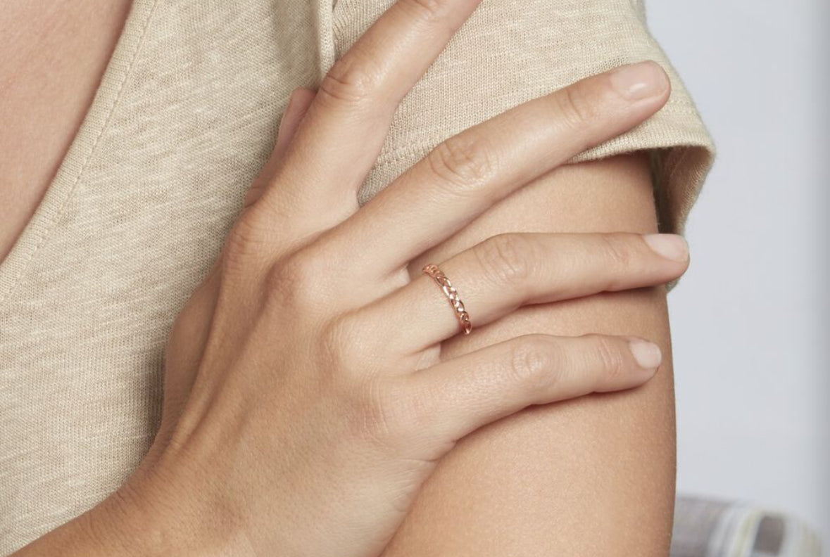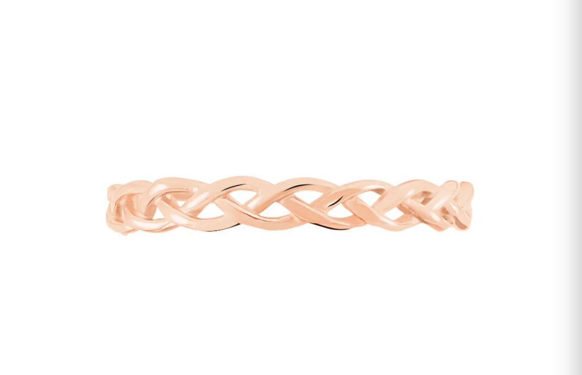 Cette alliance en or rose est conçue dans un style entrelacé unique, offrant à la fois élégance et modernité. Son design ingénieux apportera une touche de sophistication à votre look. Fabriquée avec expertise, elle est le choix parfait pour symboliser votre amour éternel.