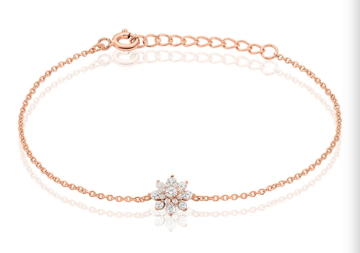 Ce bracelet en or rose de 19cm est décoré d'un diamant en forme de fleure. Fabriqué avec soin et attention aux détails, ce bijou élégant et délicat ajoutera une touche de sophistication à toutes vos tenues. Parfait pour offrir en cadeau ou pour vous faire plaisir. Soyez élégant et étincelant avec ce bracelet unique en son genre.