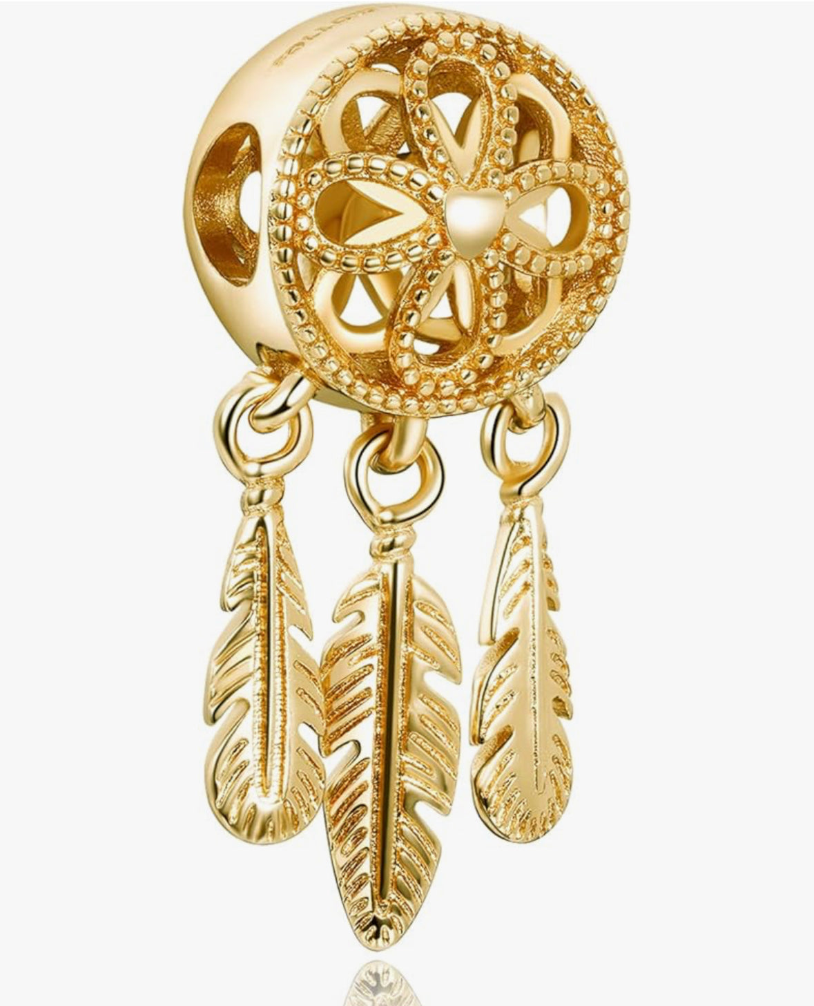 Ce charm en plaqué or est parfait pour les amateurs de bijoux Pandora. Il représente un attrape-rêves, un symbole de protection et de bonheur. Ajoutez-le à votre bracelet pour un look unique et élégant. Fabriqué en plaqué or de haute qualité, ce charm apportera une touche de glamour à votre collection de bijoux.