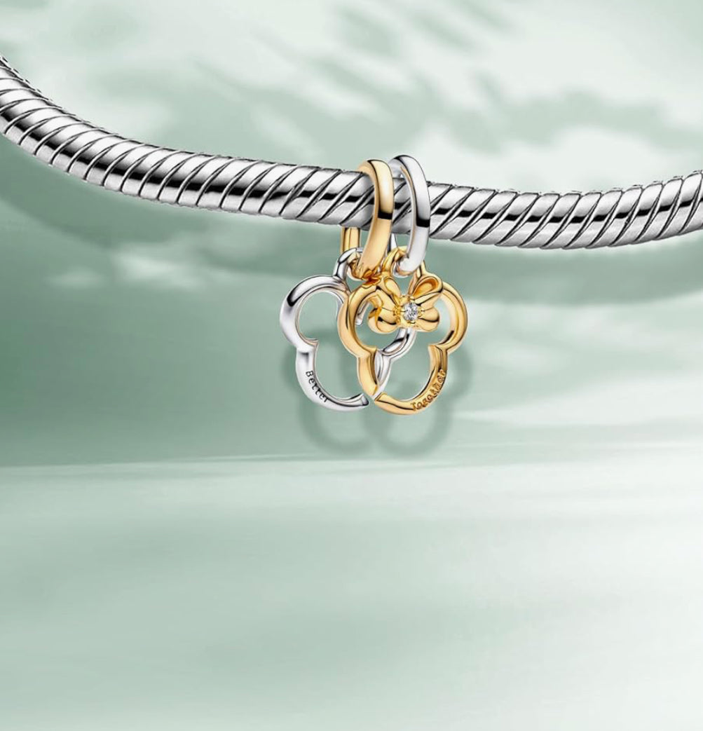 Découvrez le charme mini Mickey en or et argent pour Pandora. Ajoutez une touche de magie à votre collection de bijoux avec ce charm délicatement conçu. Offrez-vous un bijou intemporel qui rappelle l'enfance et la joie, tout en étant compatible avec les bracelets Pandora pour une personnalisation sans fin.