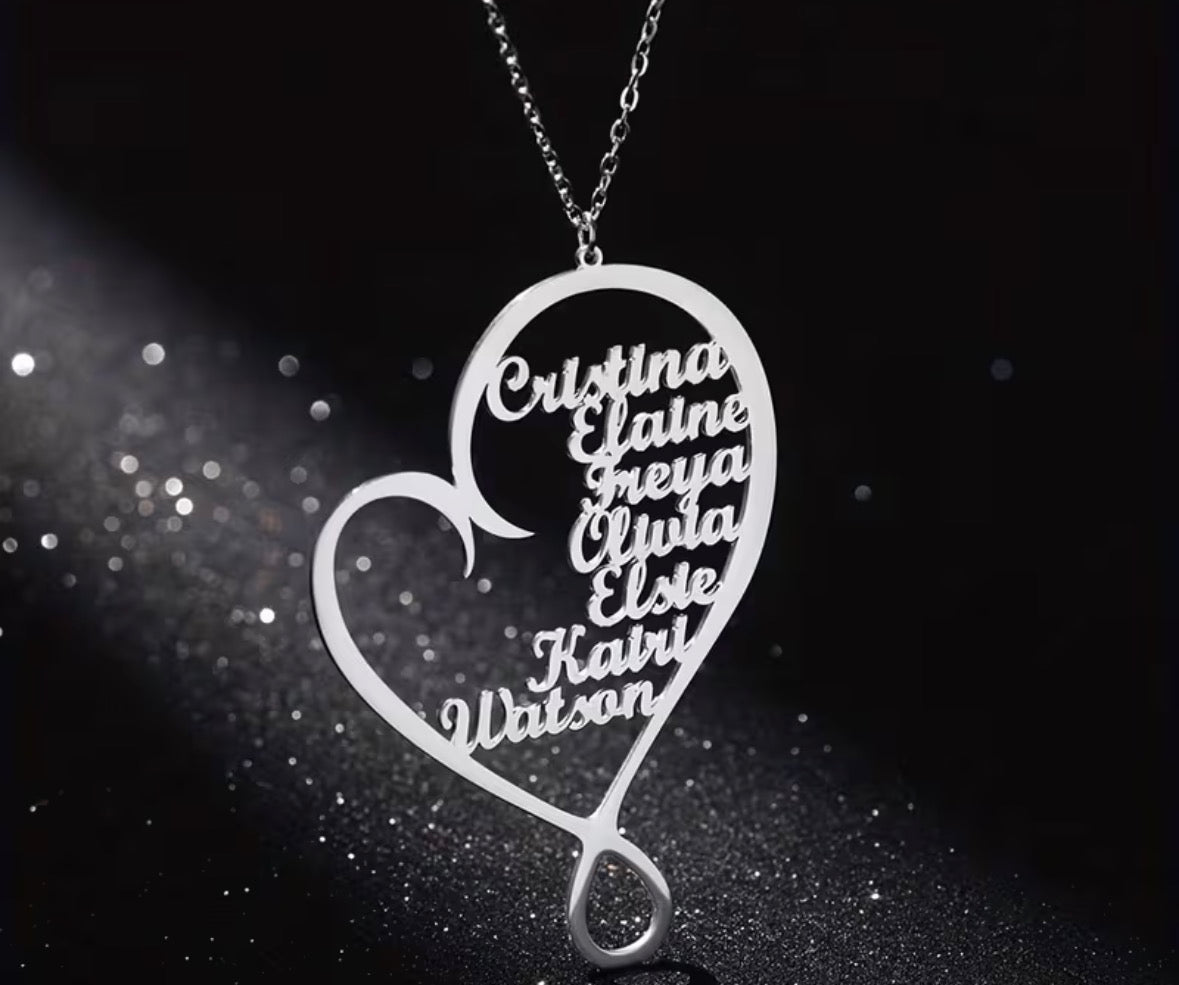 Personnalisez ce joli cœur en argent avec jusqu'à 7 prénoms de votre choix. Montrez votre amour et votre attachement avec ce cadeau unique et personnalisé. Idéal pour les anniversaires, la Saint-Valentin ou toute autre occasion spéciale. Fabriqué avec soin en argent de haute qualité, ce cœur représente un symbole intemporel de l'amour et de la famille. Ne manquez pas cette opportunité de créer un cadeau significatif pour vos proches.