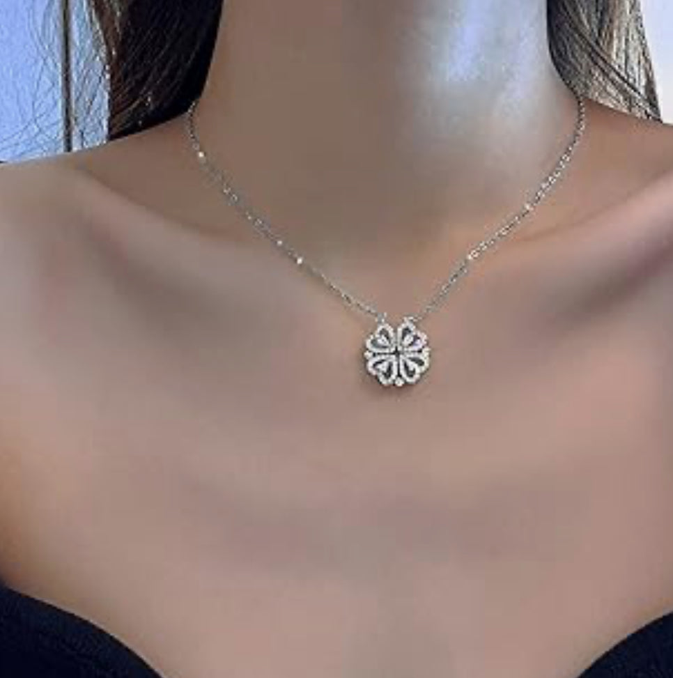 Collier argent trèfle à quatre cœur