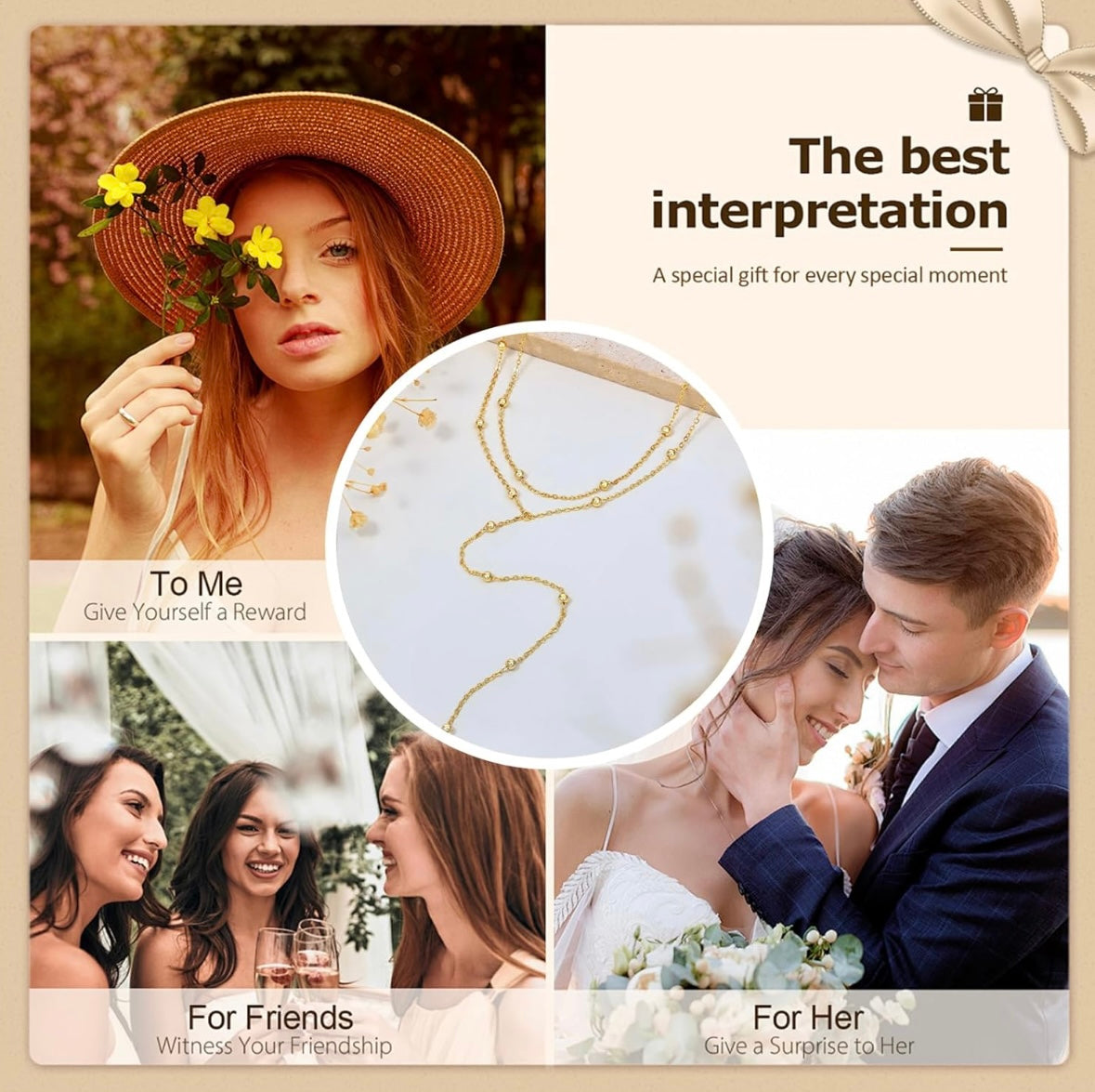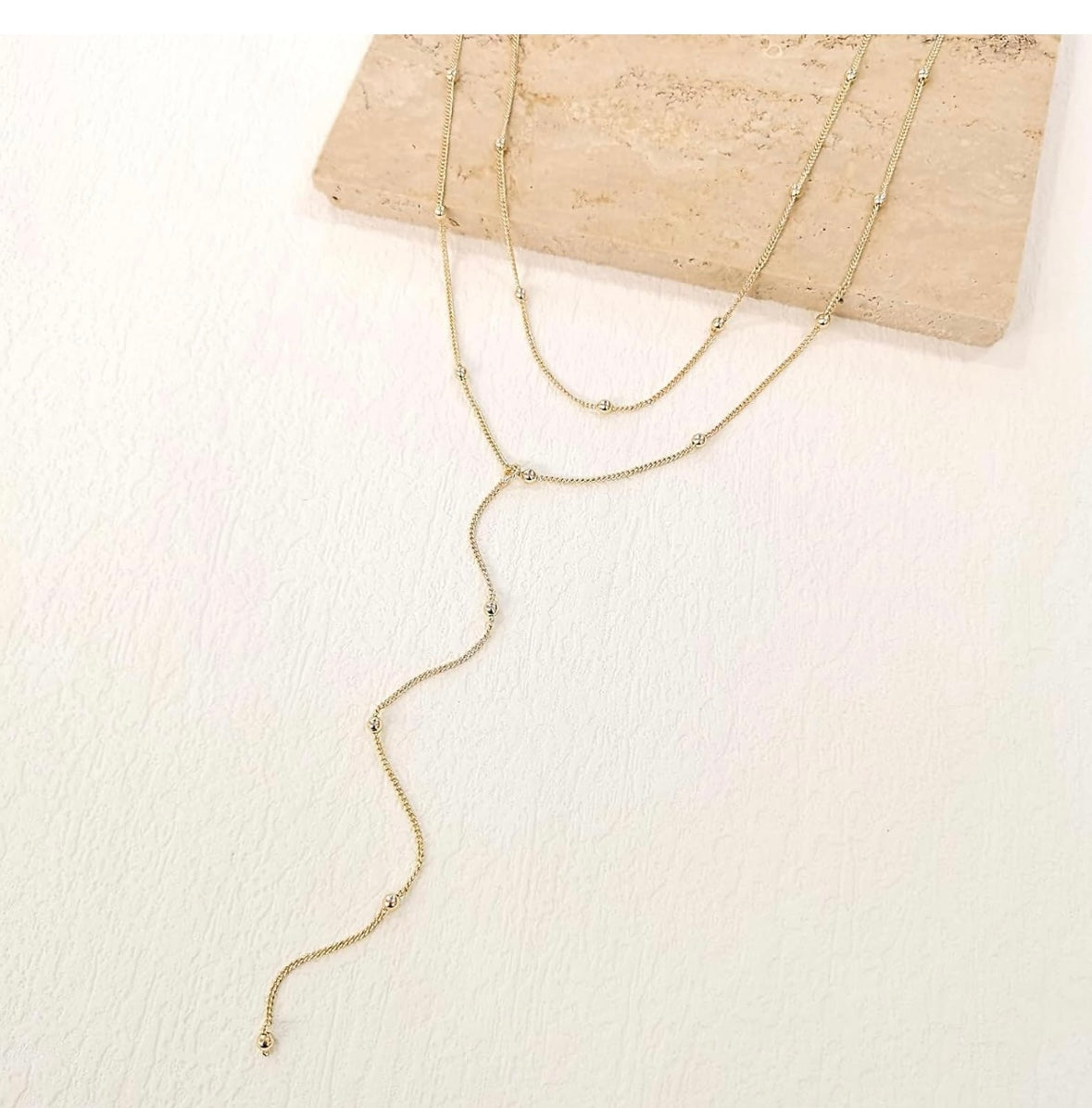 Ce collier Y en or 14 carats pour femme est à la fois délicat et tendance. Sa chaîne longue et en forme de Y est ornée de perles en couches, offrant un style élégant et moderne. Parfait pour toutes les occasions, ce bijou simple ajoutera une touche sophistiquée à n'importe quelle tenue.