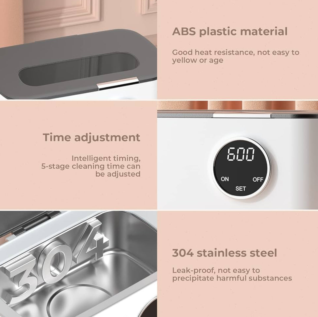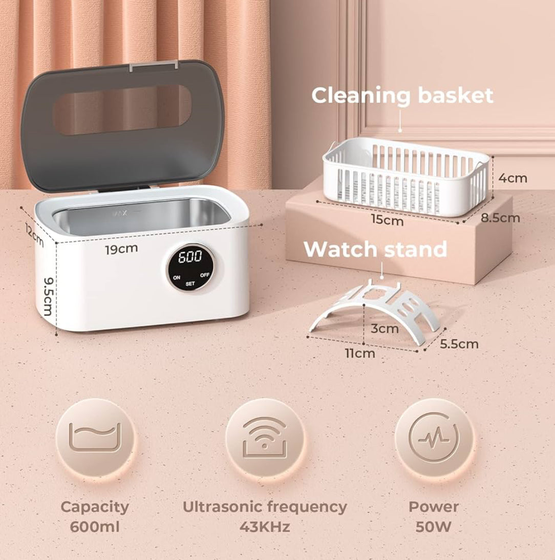 Nettoyez efficacement tout, des bijoux aux montres en passant par les lunettes, avec notre nettoyeur à ultrasons. Utilisant une fréquence de 43kHz, il élimine la saleté et les bactéries en profondeur. Choisissez parmi 5 réglages de temps pour un nettoyage optimal. Comprend un panier et un support pour faciliter le nettoyage.